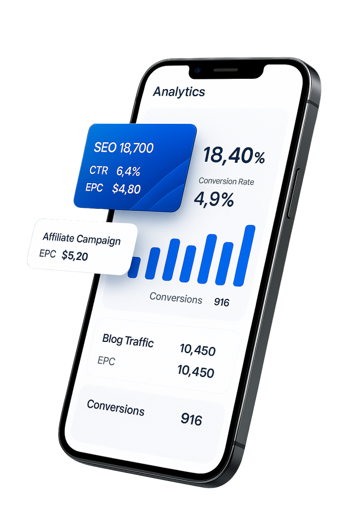 We combine our own proven success in affiliate marketing with a results-driven service model for our clients. From running profitable SEO and EPC campaigns across different industries to providing tailored growth strategies, we offer a unique blend of in-house expertise and hands-on market experience—ensuring that every partnership benefits from methods that are already delivering measurable results.
